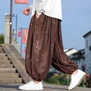 91.45$Original price was: 91.45$.68.59$Current price is: 68.59$.Mythstone Bamboo Leaves Pattern Loose Men’s Harem Pants With Pockets