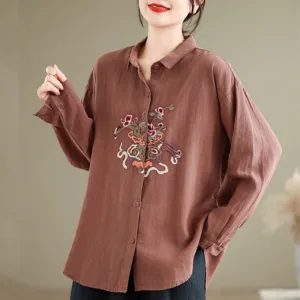 79.45$Original price was: 79.45$.59.59$Current price is: 59.59$.Mythstone Flower Embroidery Long Sleeve Cotton Linen Women’s Shirts