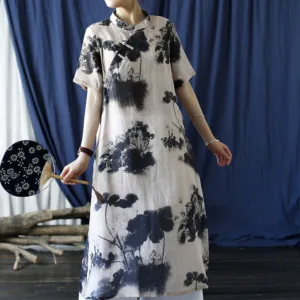 92.69$Original price was: 92.69$.68.59$Current price is: 68.59$.Mythstone Ramie Linen Ink Lotus Leaf Cheongsam Dresses Short Sleeve Dress