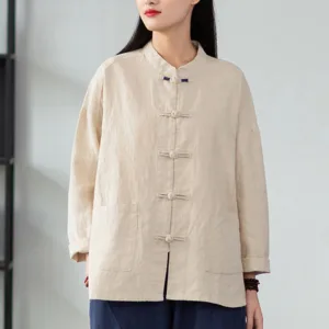 52.21$Original price was: 52.21$.37.59$Current price is: 37.59$.Mythstone Solid Color Frog-button Long Sleeve Linen Women’s Shirts With Pockets