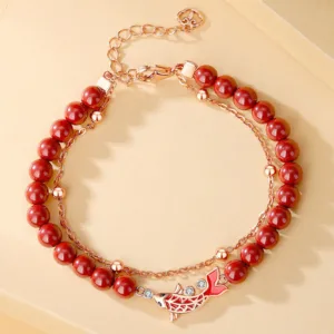 32.37€ – 34.09€Price range: 32.37€ through 34.09€Mythstone 925 Sterling Silver Lucky Koi Fish Cinnabar Zircon Prosperity Double Layer Chain Bracelet