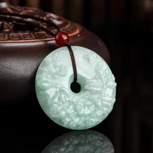 42.49$Original price was: 42.49$.30.59$Current price is: 30.59$.Mythstone Round Jade Peace Buckle Peony Flower Abundance Necklace Pendant