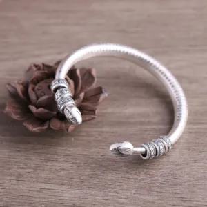 Mythstone 925 Sterling Silver Year of the Snake Blessing Cuff Bracelet Bangle