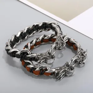 47.38$Original price was: 47.38$.34.59$Current price is: 34.59$.Mythstone Dragon Leather Titanium Steel Protection Luck Braided Bracelet