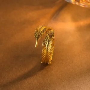 48.04$Original price was: 48.04$.34.59$Current price is: 34.59$.Mythstone River Gold Plated Copper Feather Design Wealth Ring