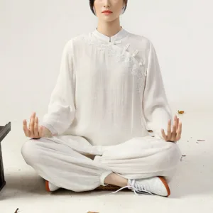 36.04$Original price was: 36.04$.25.59$Current price is: 25.59$.Mythstone 2Pcs Lotus Pattern Tai Chi Meditation Yoga Cotton Linen Clothing Top Pants Women’s Set