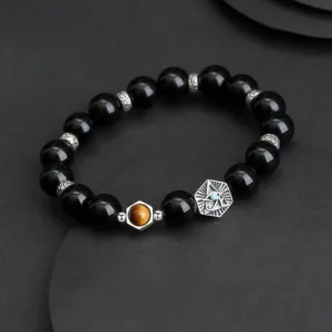 54.59$ – 87.59$Price range: 54.59$ through 87.59$Mythstone 925 Sterling Silver Black Obsidian Tiger Eye Eye of Providence Purification Bracelet