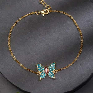 Mythstone 925 Sterling Silver Butterfly Zircon Love Chain Bracelet