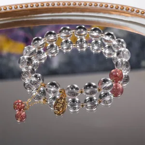 36.04$Original price was: 36.04$.25.59$Current price is: 25.59$.Mythstone White Crystal Red Hematoid Quartz Gold Rutilated Quartz Purple Phantom Protection Bracelet