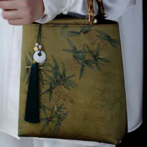 35.54$Original price was: 35.54$.25.59$Current price is: 25.59$.Mythstone Yellow Green Bamboo Leaves Bamboo Handles Handbag
