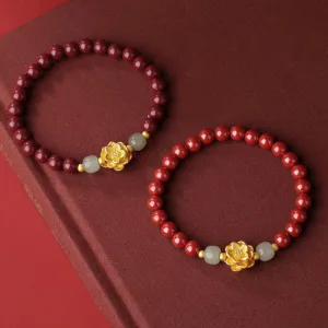 Mythstone Cinnabar Lotus Blessing Charm Bracelet