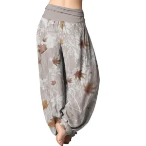 Mythstone Maple Leaf Pattern Women’s Elastic Waist Harem Pants