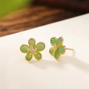 35.59$ – 45.59$Price range: 35.59$ through 45.59$Mythstone 925 Sterling Silver Gold Hetian Jade Green Chalcedony Peach Blossom Luck Earrings