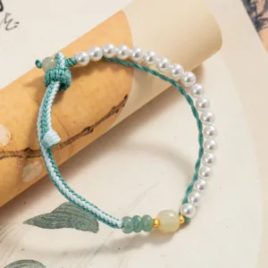 79.18$Original price was: 79.18$.58.59$Current price is: 58.59$.Mythstone 925 Sterling Silver Hetian Jade Braided Rope Pearl Abundance Bracelet