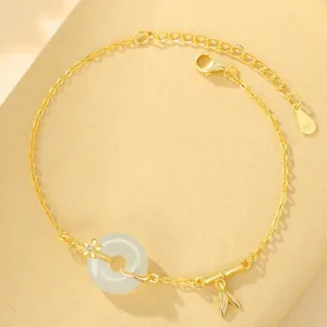 39.16$Original price was: 39.16$.28.59$Current price is: 28.59$.Mythstone 925 Sterling Silver Hetian Jade Chalcedony Peace Buckle Bamboo Leaf Prosperity Chain Bracelet