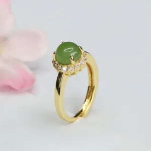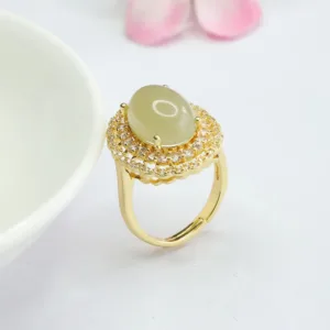 34.12$Original price was: 34.12$.25.59$Current price is: 25.59$.Mythstone Natural Hetian Jade Egg Hollow Double Circle Zirconia Copper Open Abundance Ring