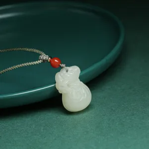 86.75$Original price was: 86.75$.61.59$Current price is: 61.59$.Mythstone Natural Hetian Jade Money Bag Wealth Necklace Pendant Key Chain Phone Hanging Decoration