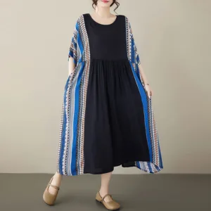 $106.20Original price was: $106.20.$78.59Current price is: $78.59.Mythstone Black Blue Stripes Short Sleeve Midi Dress With Pockets