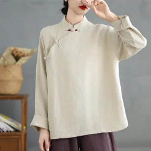 100.79$Original price was: 100.79$.75.59$Current price is: 75.59$.Mythstone Solid Color Ramie Linen Loose Blouse Long Sleeve Shirt Chinese Hanfu Top