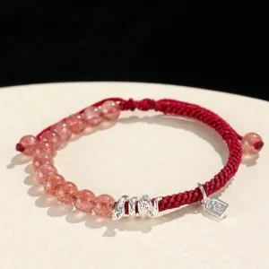 35.05$Original price was: 35.05$.25.59$Current price is: 25.59$.Mythstone Natural Strawberry Quartz Silver Sheen Obsidian Year of the Snake String Protection Braided Bracelet