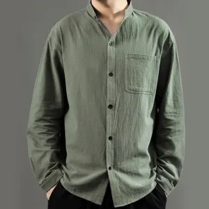 51.45$Original price was: 51.45$.38.59$Current price is: 38.59$.Mythstone Men’s Long Sleeve Shirt With Pocket Stand Collar Comfort Linen Shirt