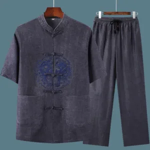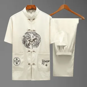 $110.12Original price was: $110.12.$82.59Current price is: $82.59.Mythstone Dragon Embroidery Pattern Tang Suit Short Sleeve Shirt Pants Men’s Set