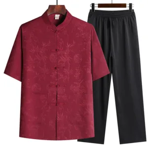 $131.45Original price was: $131.45.$98.59Current price is: $98.59.Mythstone Bamboo Peach Blossom Tang Suit Hanfu Traditional Uniform Short Sleeve Top Pants Clothing Men’s Set