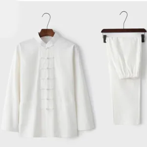 $121.96Original price was: $121.96.$86.59Current price is: $86.59.Mythstone 2Pcs Plain Tang Suit Men’s Frog-Button Long Sleeve Shirt Pants Set