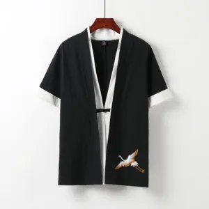 72.04$Original price was: 72.04$.52.59$Current price is: 52.59$.Mythstone Crane Embroidery Casual Frog-button Cotton Linen Men’s Jacket Shirt Clothing