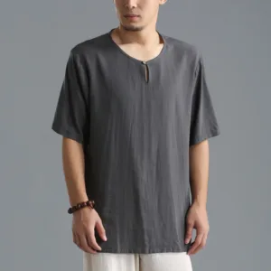 46.65$Original price was: 46.65$.33.59$Current price is: 33.59$.Mythstone Men’s Solid Color Round Neck Short Sleeve CottonLinen Shirt