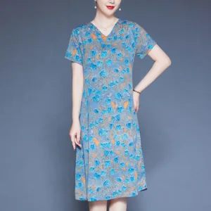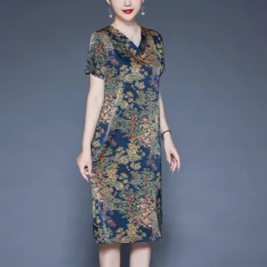 74.12$Original price was: 74.12$.55.59$Current price is: 55.59$.Mythstone V-Neck Tree Leaves Short Sleeve Midi Dress With Pockets