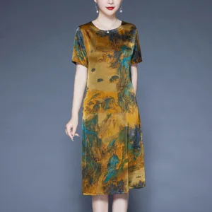 77.21$Original price was: 77.21$.55.59$Current price is: 55.59$.Mythstone Mountains Trees Pattern Short Sleeve Midi Dress With Pockets