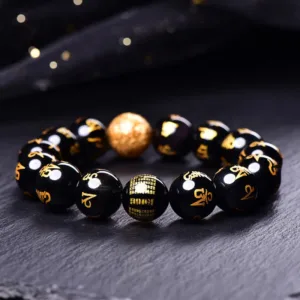 41.10$Original price was: 41.10$.29.59$Current price is: 29.59$.Mythstone Six True Words Om Mani Padme Hum Rainbow Obsidian Gold Foil Creativity Bracelet