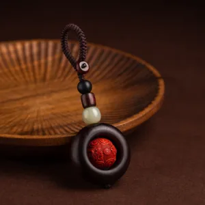 Mythstone Cinnabar Om Mani Padme Hum Blessing Rotatable Necklace Pendant Key Chain