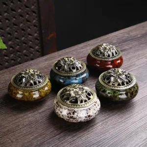 Mythstone Flower Pattern Ceramic Blessing Meditation Incense Burner Decoration