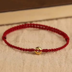 59.71$Original price was: 59.71$.43.59$Current price is: 43.59$.Mythstone 999 Gold Small Peace Buckle Red String Protection Luck Braided Bracelet Anklet