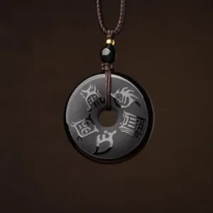 130.41$Original price was: 130.41$.92.59$Current price is: 92.59$.Mythstone Black Obsidian Taoism Five Sacred Mountains Carved Strength Peace Buckle Necklace Pendant Key Chain Phone Hanging Decoration