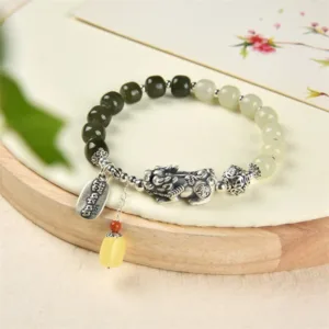 $57.59 – $69.59Price range: $57.59 through $69.59Mythstone 925 Sterling Silver Natural Hetian Jade Amber PiXiu Luck Bracelet