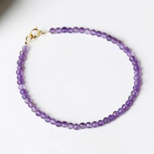 30.07£Original price was: 30.07£.21.35£Current price is: 21.35£.Mythstone 2.5mm Natural Amethyst Ultra-thin Beads 14k Gold Plated Copper Inner Peace Bracelet