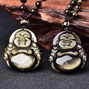 37.28$Original price was: 37.28$.27.59$Current price is: 27.59$.Mythstone Laughing Buddha Gold Sheen Obsidian Wealth Necklace Pendant