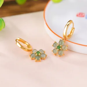 78.89$Original price was: 78.89$.57.59$Current price is: 57.59$.Mythstone 925 Sterling Silver Plated Gold Green Jade Flower Design Luck Prosperity Earrings