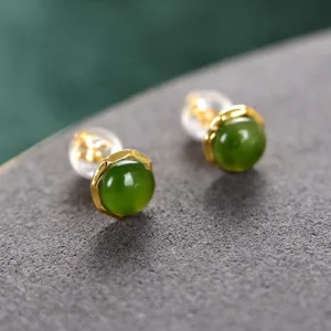 202.24$Original price was: 202.24$.143.59$Current price is: 143.59$.Mythstone 925 Sterling Silver Plated Gold Natural Hetian Cyan Jade Bead Luck Stud Earrings