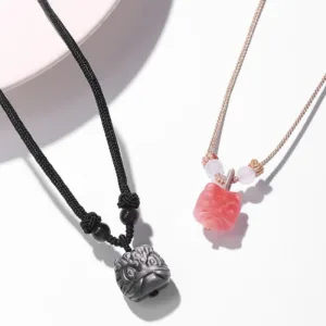 25.59$ – 27.59$Price range: 25.59$ through 27.59$Mythstone Natural Silver Sheen Obsidian Red Agate Dancing Lion Protection Necklace Pendant