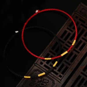 50.80$Original price was: 50.80$.37.59$Current price is: 37.59$.Mythstone 999 Gold Lucky Bead Eight Thread Peace Knot Red Rope Bracelet