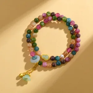 47.38$Original price was: 47.38$.34.59$Current price is: 34.59$.Mythstone Multicolored Tourmaline Positive Double Wrap Gourd Charm Bracelet