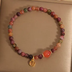 30.18€Original price was: 30.18€.22.04€Current price is: 22.04€.Mythstone Natural Colorful Tourmaline Strawberry Quartz Bead Positive Love Bracelet