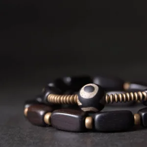 144.64$Original price was: 144.64$.105.59$Current price is: 105.59$.Mythstone Tibet Ebony Wood Dzi Bead Copper Balance Double Wrap Bracelet