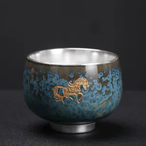 125.47$Original price was: 125.47$.91.59$Current price is: 91.59$.Mythstone 999 Gilt Silver Gilt Chinese Zodiac Ceramic Teacup Kung Fu Tea Cup 160ml