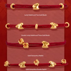 119.45$Original price was: 119.45$.89.59$Current price is: 89.59$.Mythstone 999 Gold Small Lucky Rabbit Osmanthus Design Handmade LuckBraided Rope Bracelet