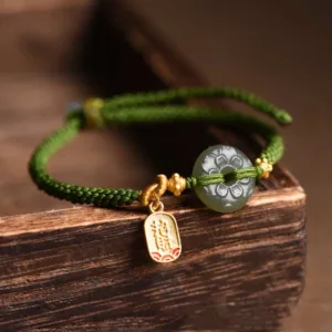 34.58$Original price was: 34.58$.25.59$Current price is: 25.59$.Mythstone Green Jade Flower Fu Character Charm Luck Bracelet